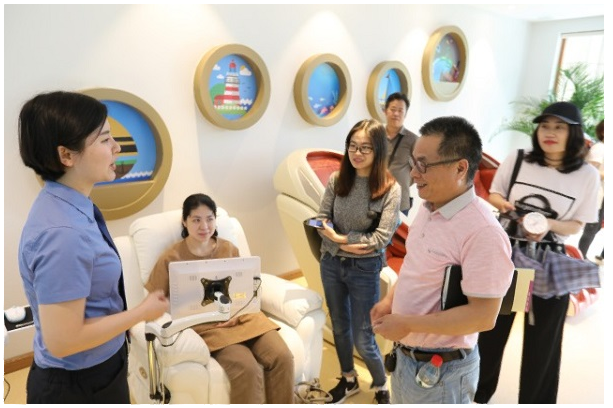 參會(huì)代表參觀并體驗(yàn)由湖北心拓建設(shè)的心理宣泄室