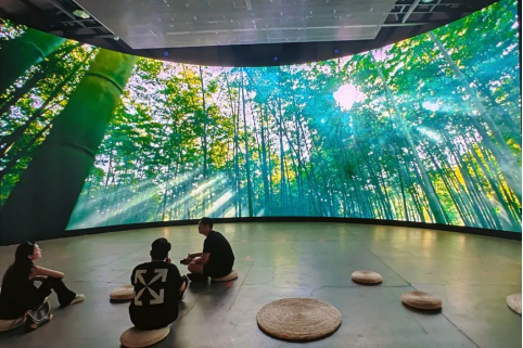 “數(shù)字冥想”體驗(yàn)區(qū)則在冥想療愈的基礎(chǔ)上融入先進(jìn)科技,讓觀(guān)眾可以“坐下來(lái),放空”“抬起頭,遇見(jiàn)”“走進(jìn)去,怒放”,在沉浸式體驗(yàn)的過(guò)程中感受全身心的放松。