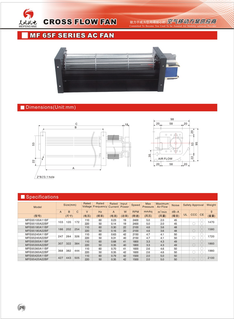 65系列橫流風機1、軸 承:采用高精度滾珠軸承或含油軸承;